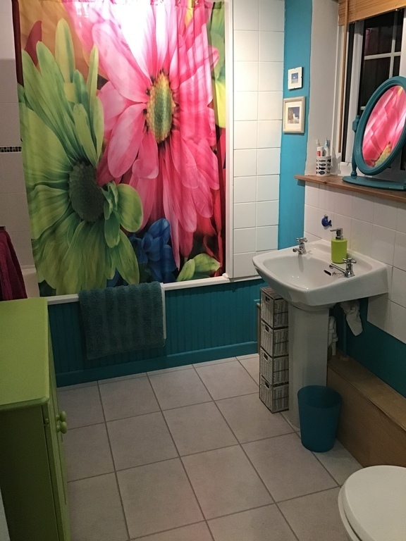 The house has 3 double bedrooms each with cupboard and drawer space. The main bedroom has French windows. There is an upstairs bathroom with powerful shower over the bath and a downstairs shower room also with a powerful shower.