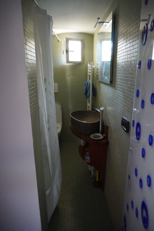 It's composed from: bedroom with double bed, big living room with a double sofa bed, small bathroom with shower, kitchen with terrace. There is air conditioned.