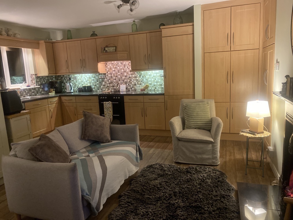 Outside there is a small front garden, a back patio ( with bbq) and an expansive green area which is very private and tranquil, surrounded by trees.