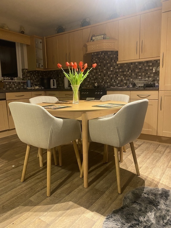 My home has 4 bedrooms, a bathroom with electric shower, a sitting room, a kitchen cum living and downstairs toilet. In the basement, there is a utility room/ laundry room and an apartment( my son’s )