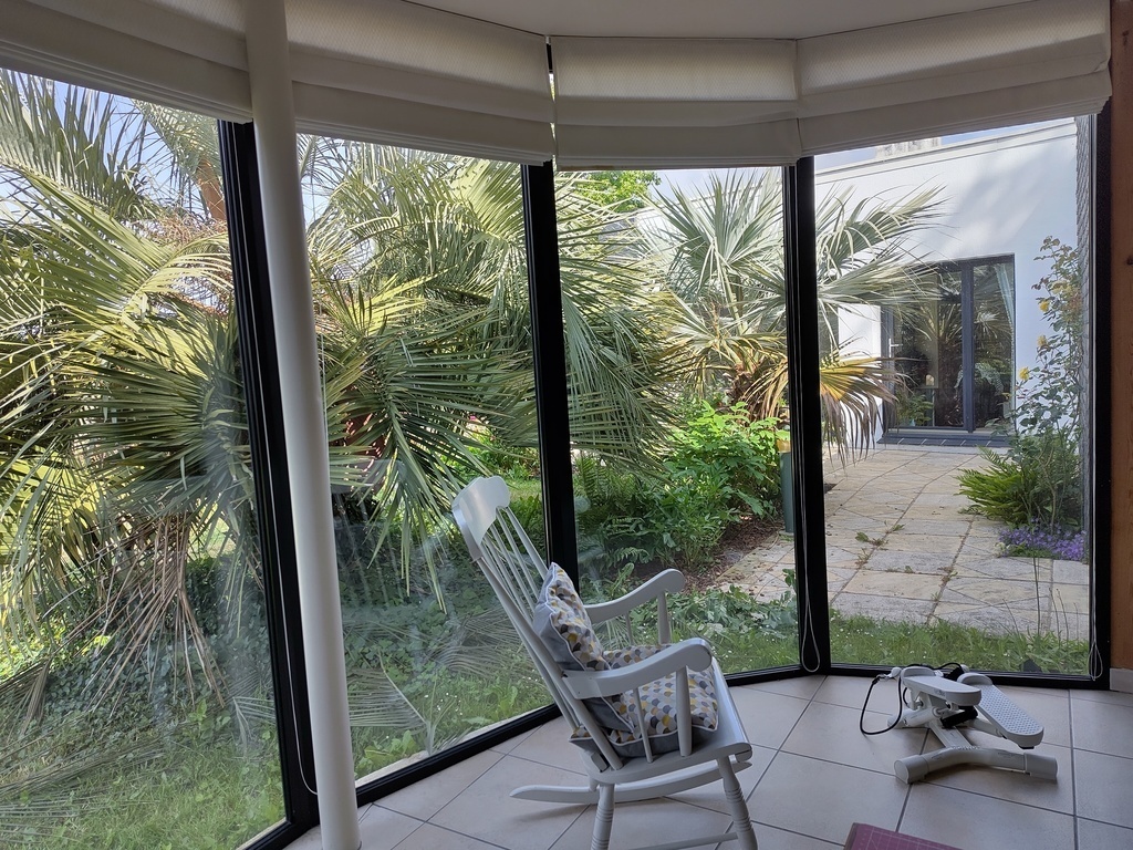 We are almost finished completely renovating it after several years of work. All the rooms overlooking the garden have large windows. At home, we're always outside, even when we're inside!