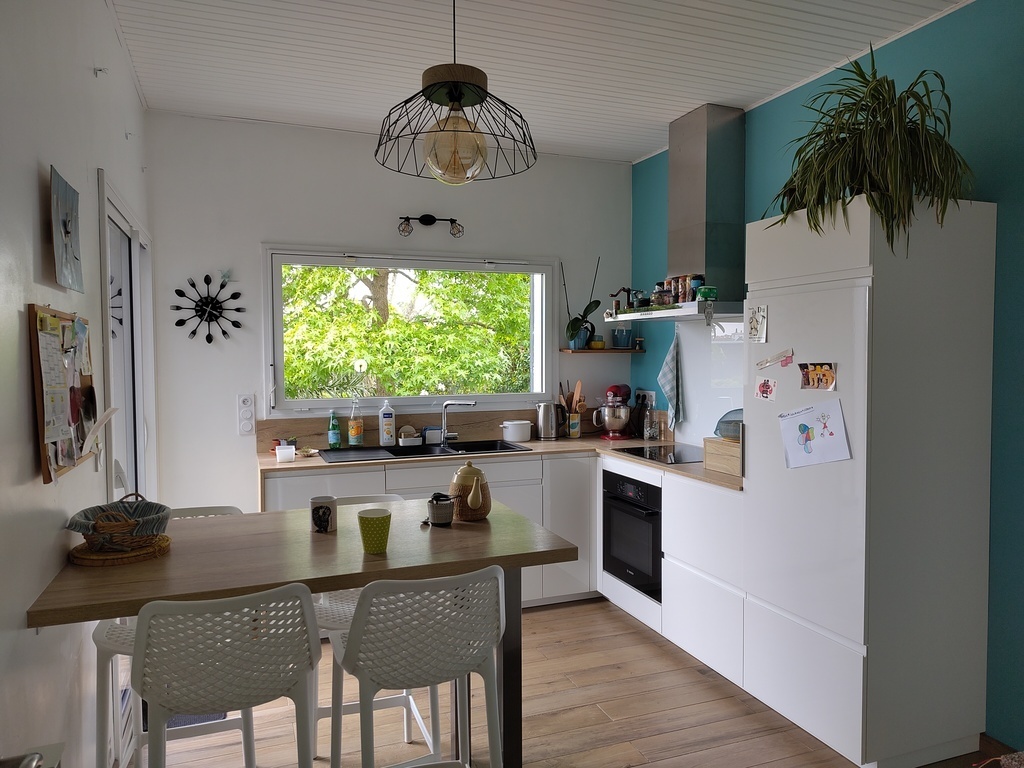 Nous avons presque fini de la rénover intégralement après plusieurs années de travaux. Toutes les pièces donnant sur le jardin bénéficient de grandes fenêtres. Chez nous, on est tout le temps dehors, même quand on est dedans !
